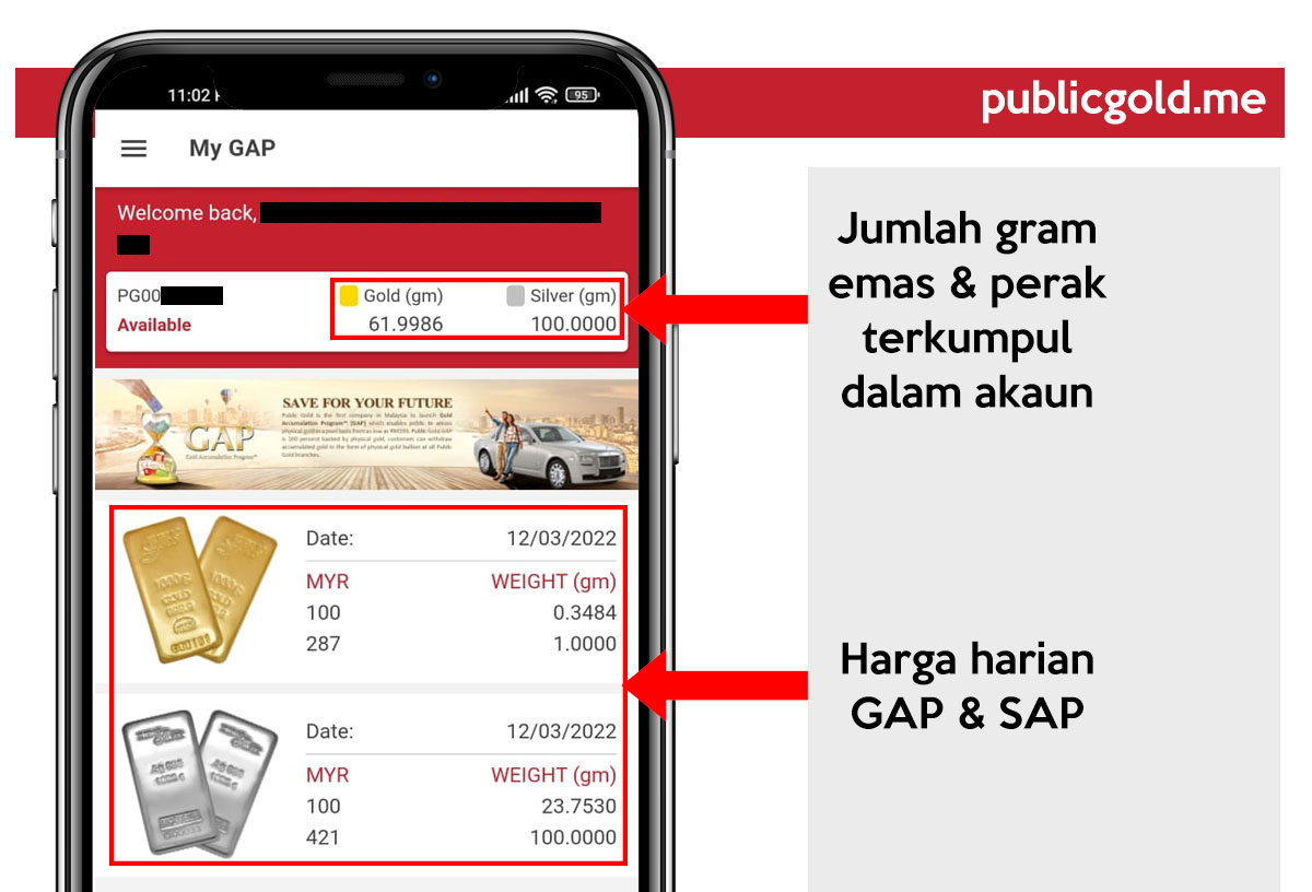 Konsepnya sama seperti akaun bank online, bezanya akaun GAP memaparkan simpanan gram emas manakala akaun bank memaparkan simpanan wang ringgit.